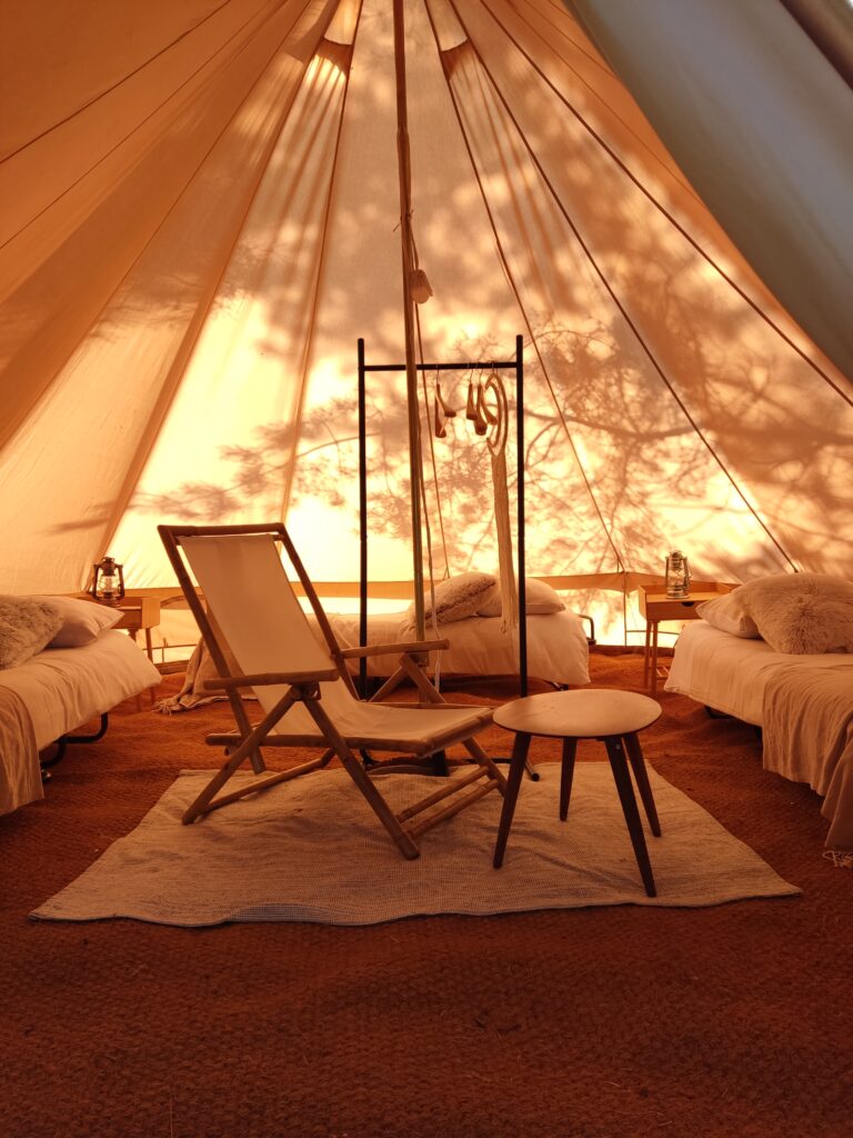 Namiot glampingowy z wyposażeniem dla 2 osób – koszt 2000 zł brutto